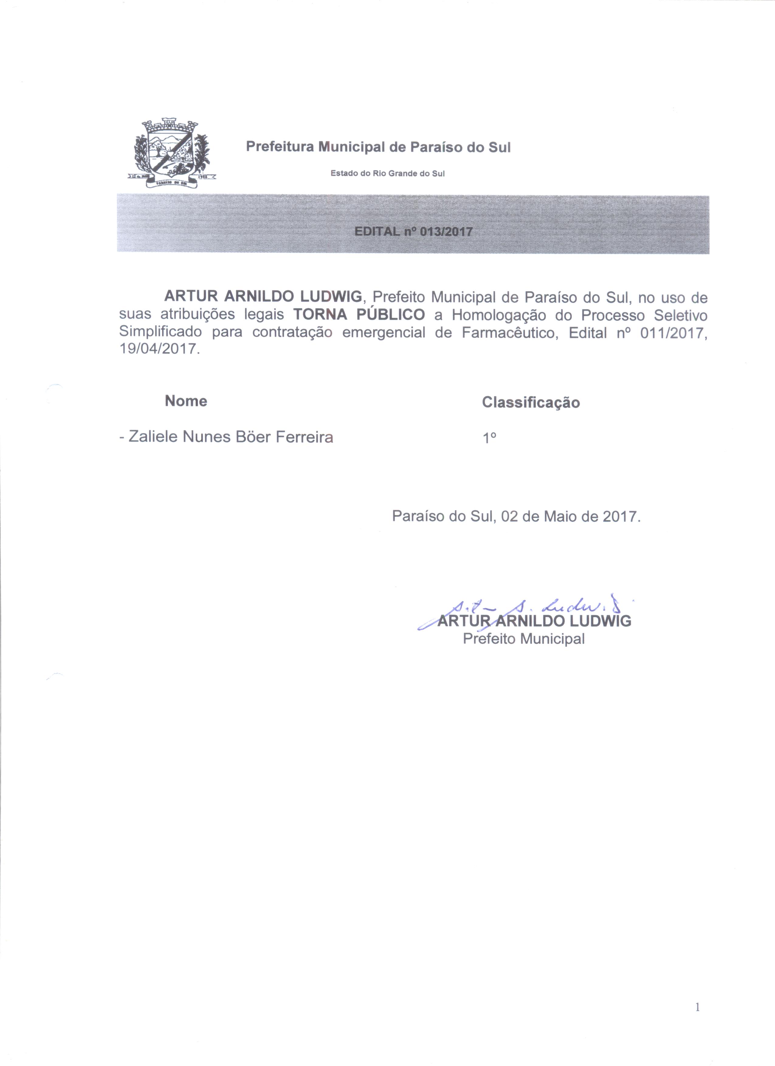| Edital 010-2017 - Enfermeiro Homologação | ||