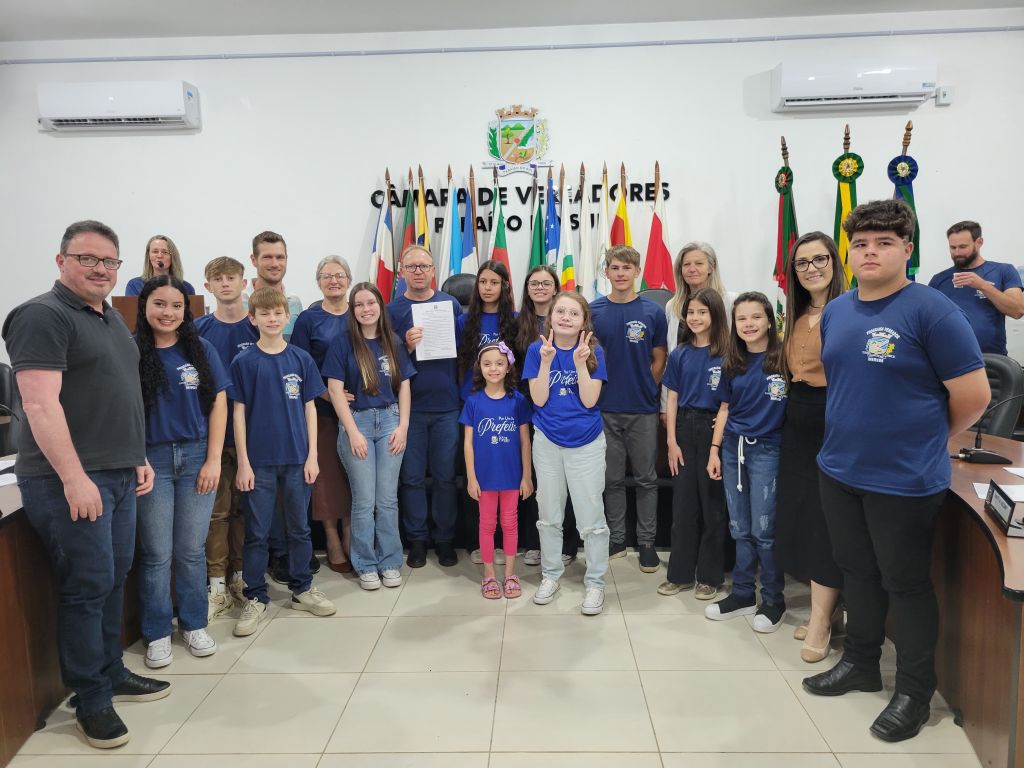 Na noite de segunda-feira, 13, o prefeito, Claiton Cléo Müller (Brittes), acompanhado dos secretários municipais, participou da Sessão Especial do Programa Vereador Mirim, na Câmara Municipal de Vereadores. Junto com a Prefeita Por Um Dia, Taiza Scholz, Brittes fez parte da Mesa Diretora que conduziu os trabalhos da Sessão e, ao final, ele recebeu todas as proposições apresentadas e aprovadas pelos vereadores mirins. “Todos os pedidos e indicações serão analisados. Parabéns aos alunos, pais e escolas pela participação”, declarou o prefeito. Ele também parabenizou o Poder Legislativo pela iniciativa de promover o protagonismo estudantil.
