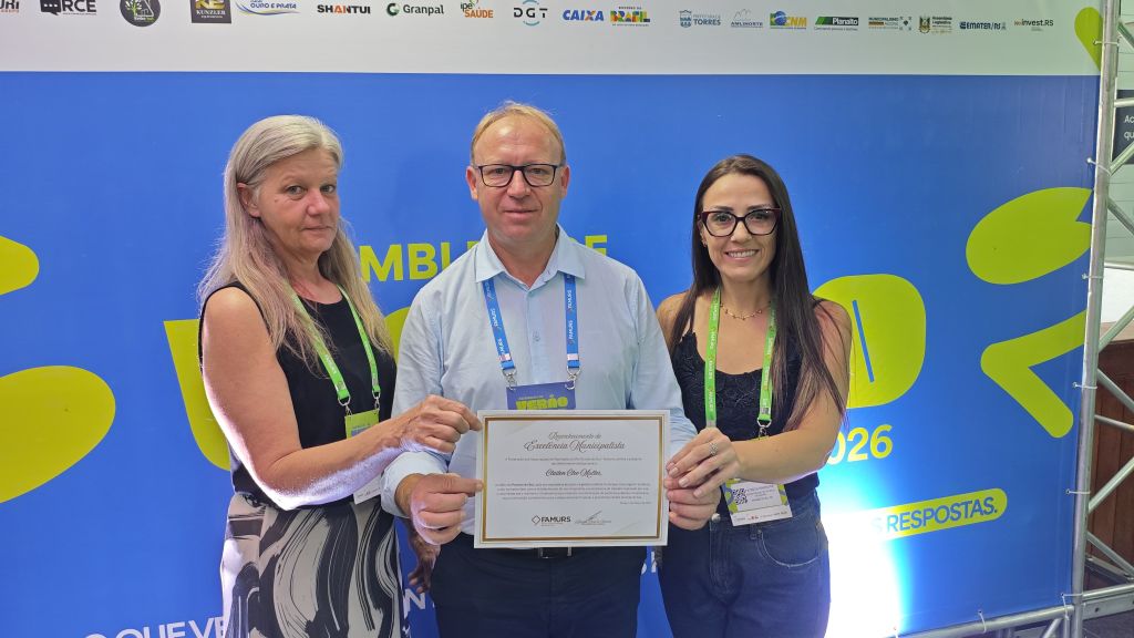 Na semana passada, o prefeito, Claiton Cléo Müller (Brittes), participou da Assembleia de Verão da Famurs 2026. O evento ocorreu de 4 a 6 de março, em Torres, reunindo prefeitos, gestores e técnicos de todas as regiões no maior encontro municipalista do Rio Grande do Sul. Brittes esteve acompanhado das secretárias de Governo e da Fazenda, Patrícia Parreira e Carla Ruff. Para ele, o evento consolida-se como espaço estratégico de articulação, quando foi possível o contato entre gestores e o debate sobre os principais desafios das administrações municipais.